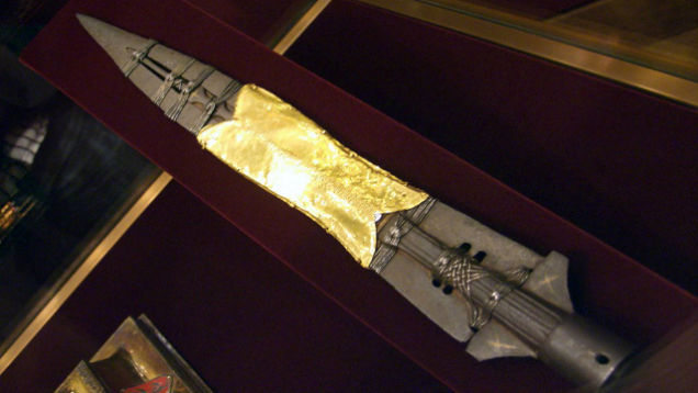 A lança é mencionada no Evangelho de João ( 19: 31-37 ), mas não nos Evangelhos Sinópticos . O evangelho afirma que os romanos planejavam quebrar as pernas de Jesus, uma prática conhecida como crurifragium , que era um método de acelerar a morte durante a crucificação . Pouco antes de fazê-lo, eles perceberam que Jesus já estava morto e que não havia razão para quebrar as pernas. Para se certificar de que ele estava morto, um soldado romano (nomeado na tradição extra-bíblica como Longinus ) esfaqueou-o no lado.