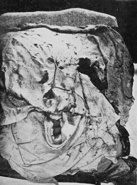 A bandeira de fada rasgada e esfarrapada, fotografada em algum momento antes de 1924